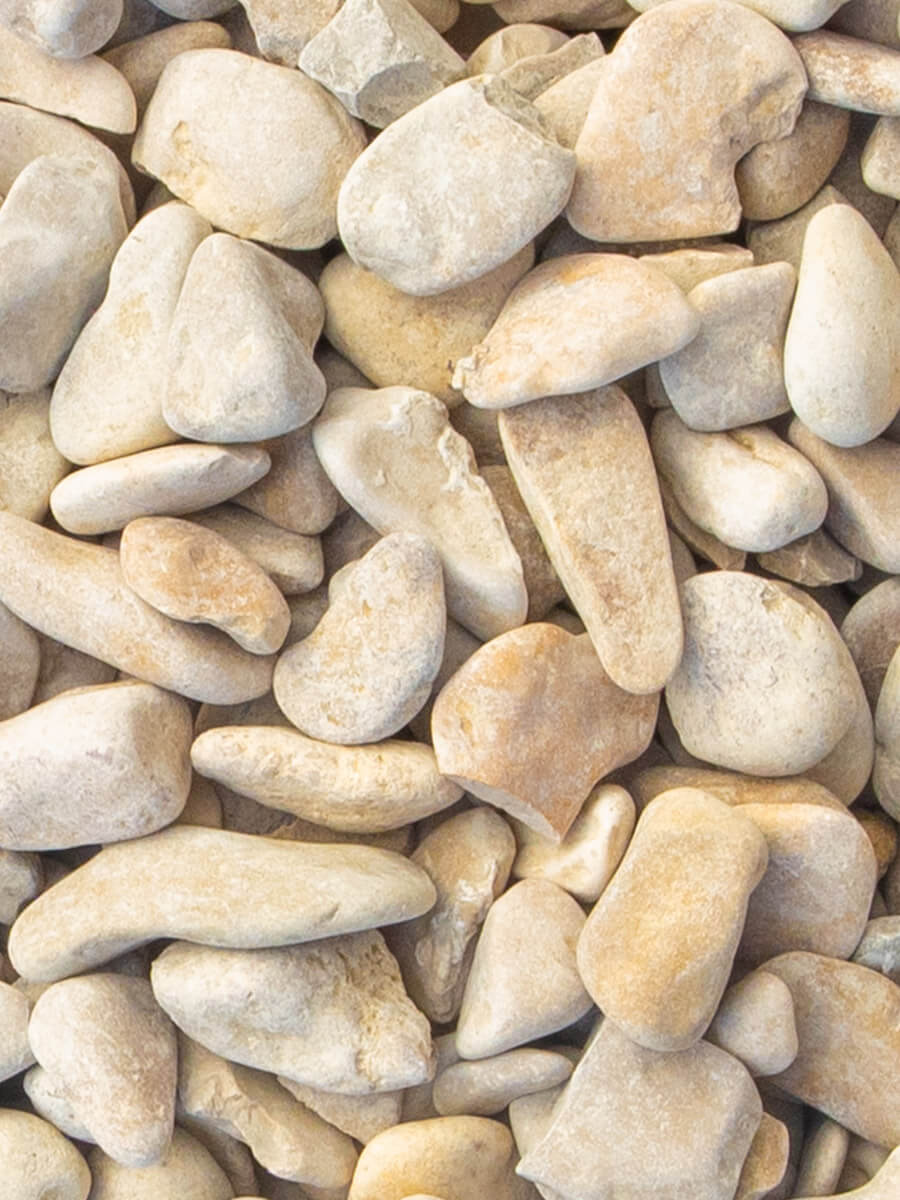 Castle grind bestaat uit prachtige ronde kiezels met een egale beige kleur, die een natuurlijke uitstraling geven aan uw tuin.