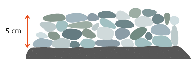 De standaard laagdikte is 5cm. Kalibers tussen 20mm en 40mm vragen een dikkere laagdikte van 6-7cm. Grotere kalibers: afhankelijk van de maat ±6-10cm.
