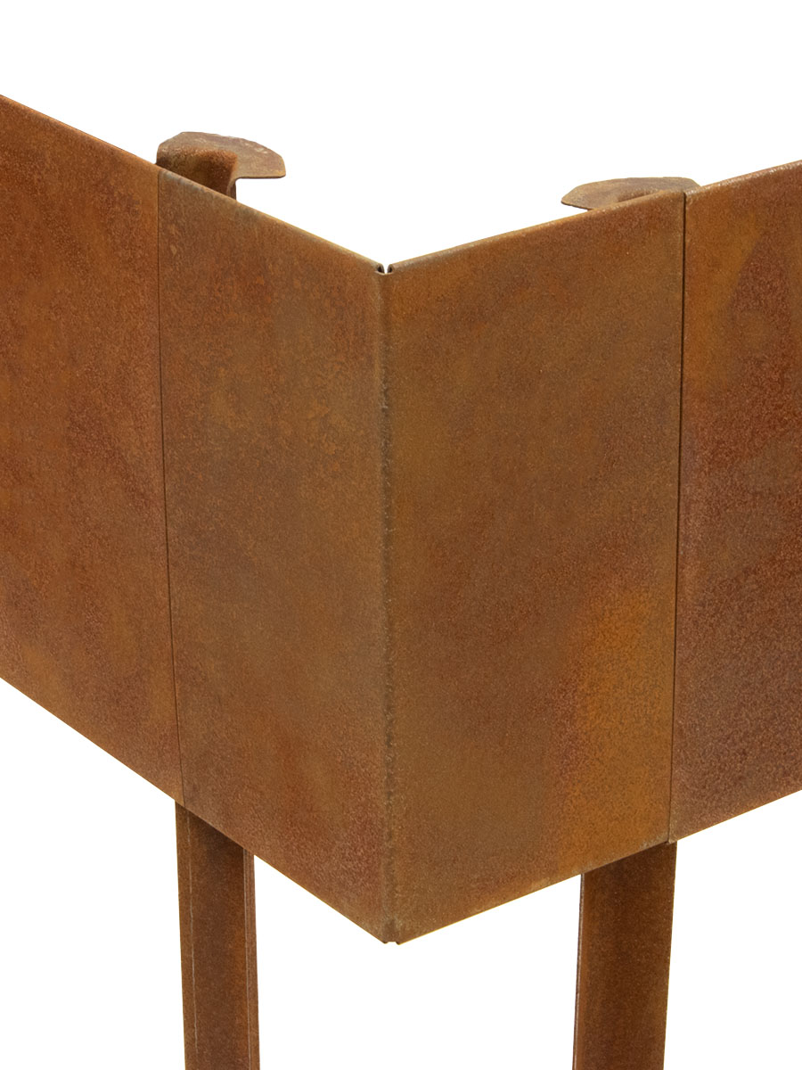 Cortenstaal staat bekend om zijn duurzame en weerbestendige eigenschappen. Naarmate het materiaal veroudert, ontwikkelt het een karakteristieke roestkleur die voor een warme, natuurlijke uitstraling zorgt. Dit maakt de plantenbak niet alleen een blikvanger, maar ook onderhoudsarm en geschikt voor alle seizoenen. Zeer geschikt om in combinatie te gebruiken met onze andere cortenstaal producten, zoals de veelzijdige Multi-Edge METAL en Multi-Edge PROFILE.