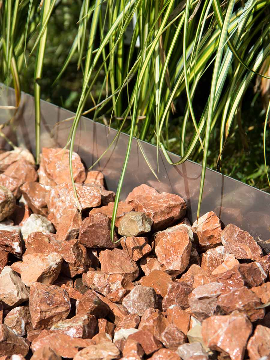 De afboording is gemaakt van stevig maar toch buigzaam metaal. Hierdoor kunt u zowel rechte randen als glooiende of gebogen vormen creëren in uw tuin!